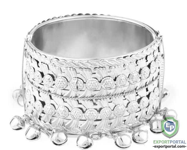 - Antique bohemian vintage oxidised silver bell charm bracelet, L X W: 2.6" Inch x 2.6" Inch, Metal: Alloy, Hinge open, free size