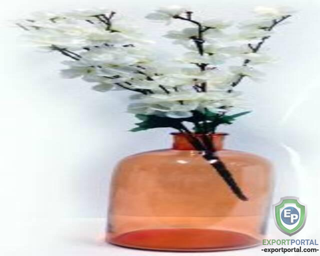 - Luxury Glass Flower vase with Rounded Burner Shape in Orange Color for room/ home/ table etc.