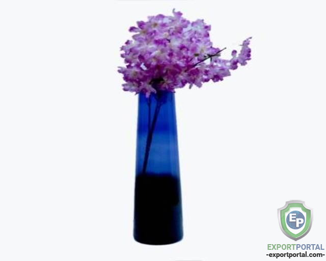 Craftfry Rounded Minar Flower Glass Vase (17 inch, Blue, Black)