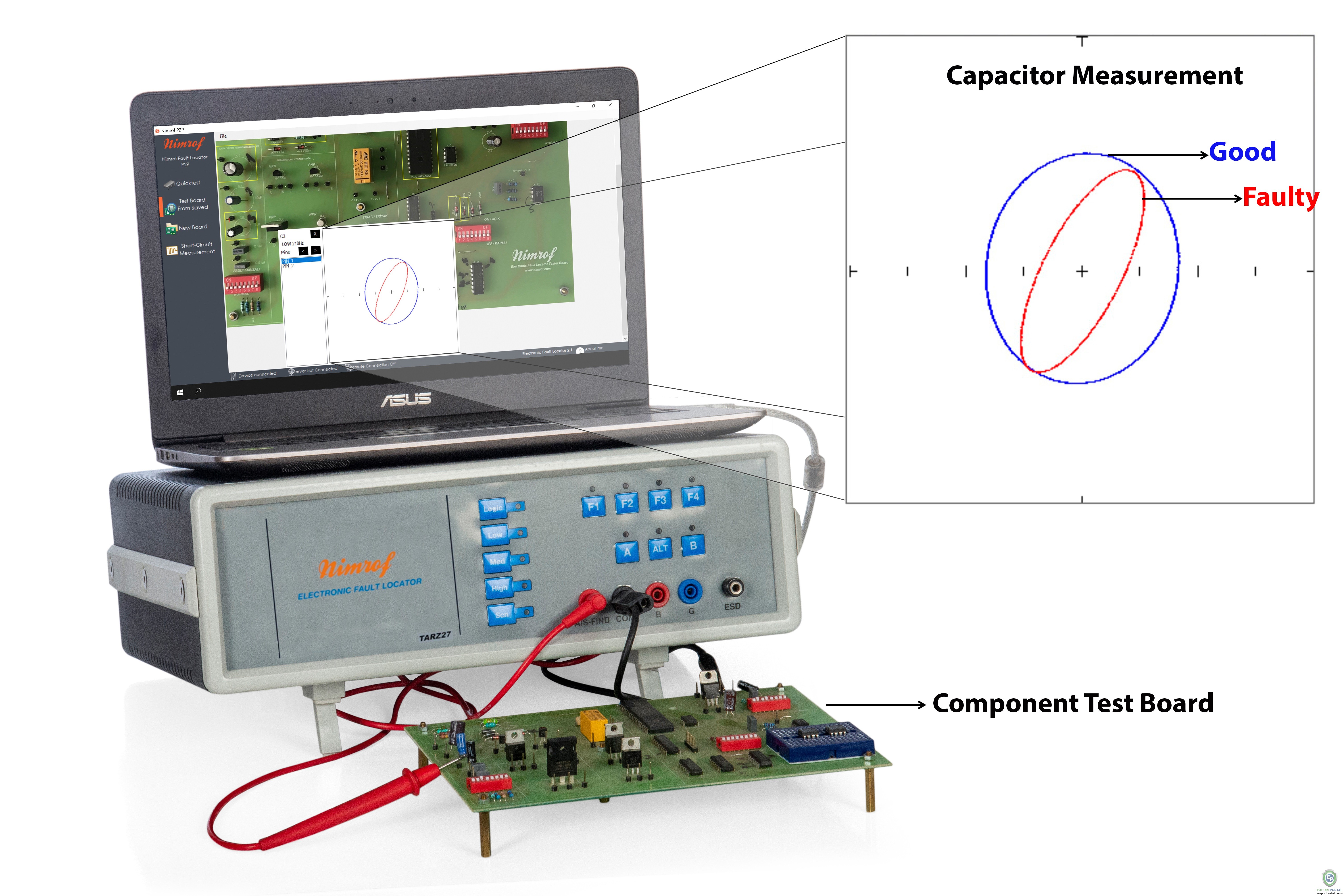 Nimrof TARZ27 Electronic Fault Locator is designed to complement conventional test instruments in the debug and troubleshooting process. Nimrof TARZ27 Component tester is suited for todays varied signal circuit cards where Analog and Digital are mixed together. It provides to find faulty component on the electronic board in a short time by using power-off test method.