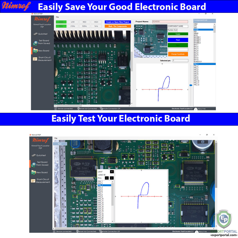 Nimrof TARZ27-TFT Electronic Fault Locator is designed to complement conventional test instruments in the debug and troubleshooting process. Nimrof TARZ27-TFT Curve tracer is suited for todays varied signal circuit cards where Analog and Digital are mixed together. It provides to find faulty component on the electronic board in a short time by using power-off test method.