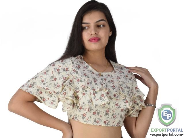 Details: The top has a front ruffle and a keyhole at the back. The length of the top is short and is supported by a chain on one side at the bottom of the top. The beautiful floral top is here to give you all the summer and beach vibes.