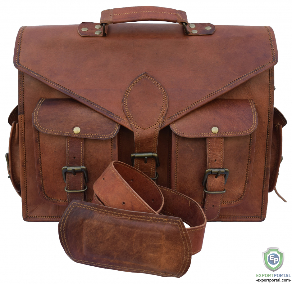 Genuine Leather Bag made from fine quality leather from India. To increase the durability of the bag, high quality canvas has been stitched inside the bag.