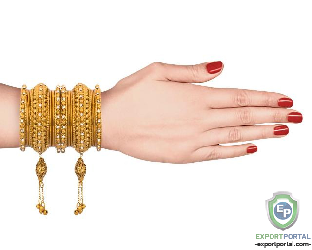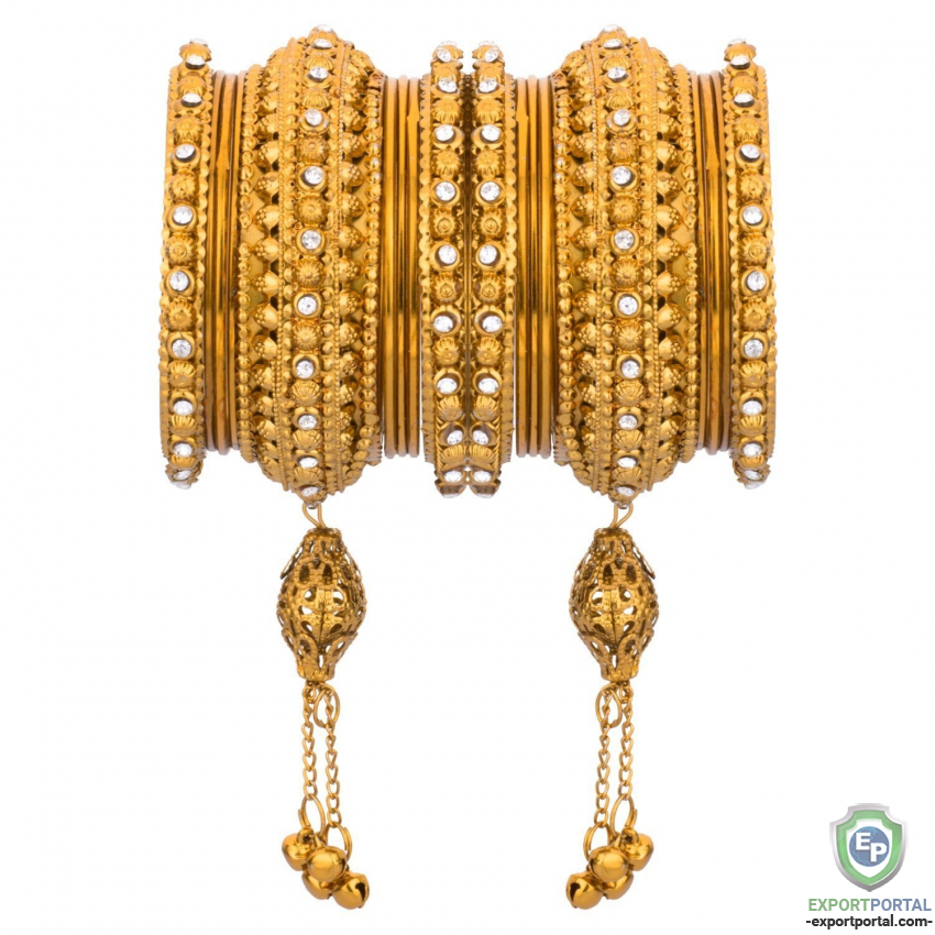 - Antique designer oxidized gold plated tassel bangle set for women, girls and ladies, Metal: Alloy, Set Content- Total 18 pieces (4 Stone, 2 Stone and Tassel, 12 Plain bangles). Size -2-4 (2.25 inch), 2-6 (2.37 inch), 2-8(2.5 inch), Bangle Size Chart is shown in Images to know your correct size.
