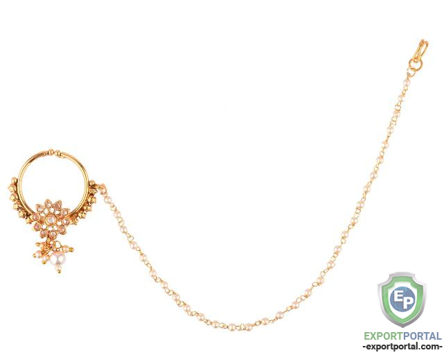 Indian Bollywood Bridal Nose Ring Hoop Pin with Pearl Chain Jewelry