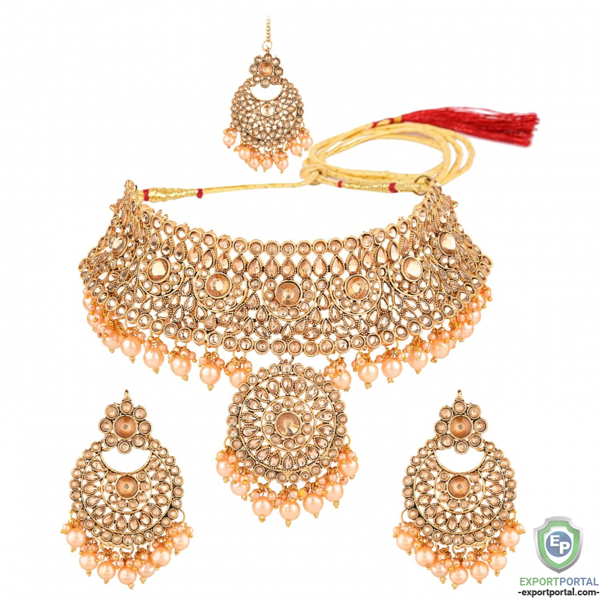 Indian Bollywood Crystal Choker Necklace Earrings Maang Tikka Jewelry