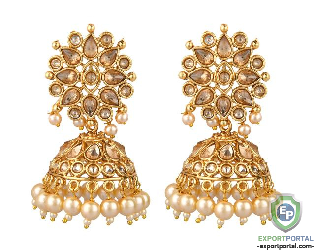Indian Bollywood Faux Pearl Crystal Kundan Jhumka Dangle Earrings Set