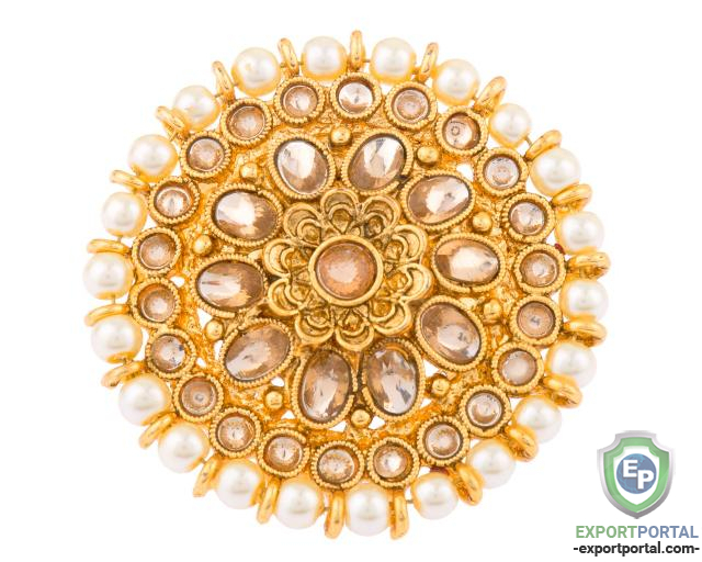 Indian Bollywood Pearl Crystal Kundan Adjustable Big Ring Jewelry