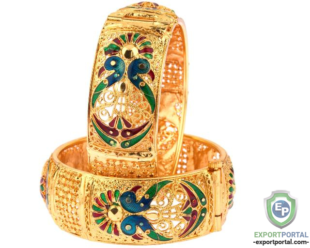 - Antique designer 14 K gold plated kundan rhinstone bracelet bangel set for women, girls and ladies, Metal: Alloy, Set Content- 2 pieces. Size -2.4 (6.09 cm), 2.6 (6.6 cm), 2.8 (7.1 cm), Bangle Size Chart is shown in Images to know your correct size.