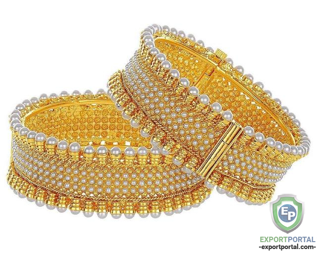 Indian Bollywood Traditional Gold Plated Faux Pearl Bridal Bangle Set