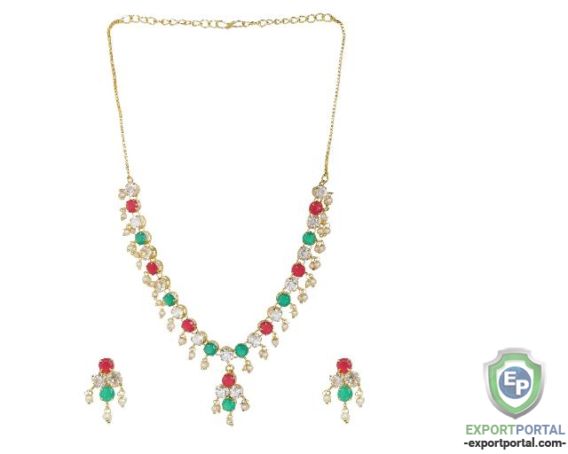 Indian Jewelry CZ Crystal Choker Necklace Earrings Set for Women