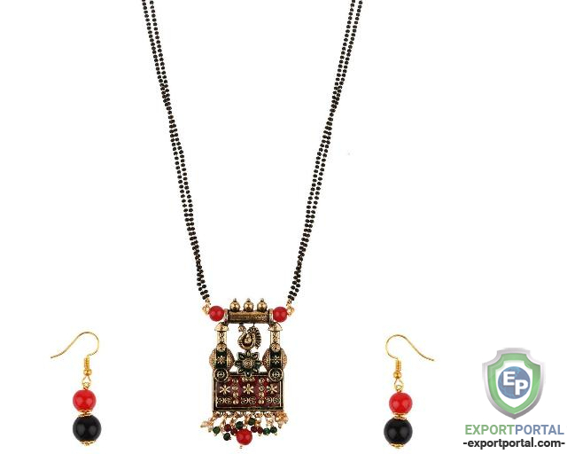 - Unique antique ethnic designer gold plated mangalsutra neckalce with S closure, Set Content: 1 Pendant Necklace, Length: 18"Inch (45 cm) and 1 Pair of Earring L x W : 1"Inch x 0.4"Inch(2.5 cm x 1cm), Material: Alloy.