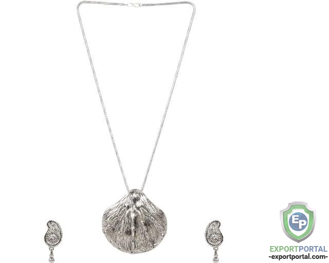 - Antique oxidized jewelry pendant chain necklace earring set, Content: a) Necklace: L x W: 24" Inch x 2.5" Inch (60.9 cm x 6.35 cm), b) A pair of Earrings L x W: 1.2" Inch x 0.6" Inch (3.0 cm x 1.5cm) Metal: Alloy.