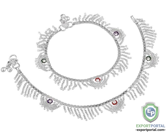 Indian Traditional Silver Tone Charms Tassel Chain Anklet Jewelry