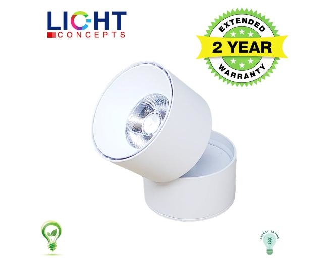 LED COB Cylindrical Surface Mount Downlight. 360º Adjuatable. Aluminum Housing Powder Coated with High Quality reflector. Beam Angle 36º. HPF (>0.95) Driver with LOW THD (<15%) COB Used - Everlight / Edison emitting @ 130 LM/W . Suitable for Surface Mount Installations Directly to Cielings