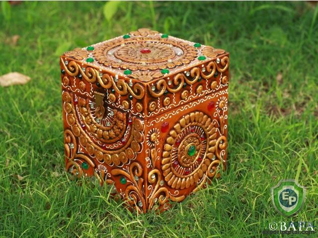 It so happens that in a woman’s life, at some point or the other she is handed a few precious things from her loved ones. The generational giveaways. It could be anything really. Bangles, chain, earrings, ring, maang tikkas, sindoor dabbi, silver coins and so many things that wrap themselves into a timeless tale. And even if that's not the case we always want to have a special place to keep the dear things given to special people by us. BAFA’s gorgeously handcrafted multi purpose box does just that. Made using paper mache, this box is a promise of giving your life a touch of traditional art and some nostalgic verses.