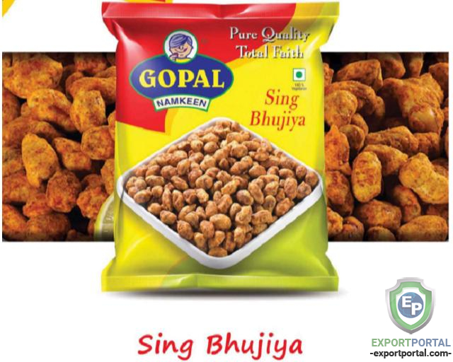 Sing bhujia, also known as masala peanuts, are a medium spicy snack originating in Indian cuisine. This bold, savory snack is most commonly enjoyed in the afternoon with a cup of tea, but is great in a snack mix or any time. Gram flour gives sing bhuija its texture and mango powder and turmeric add a singular, spicy taste.