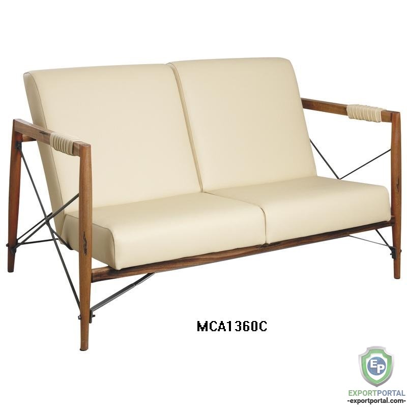 Solid suar wood and metal sofa Weight 28kg. Simili leather cushions with unremovable cover, filled with polyether foam 28kg/m3.
